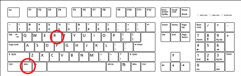 Here you will see the 2 keys involved, the Windows key being in the lower left. (Do it as you would when capitalizing a letter, holding in the Windows key while you press R.) ![]() | |