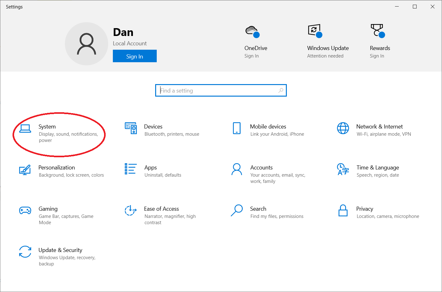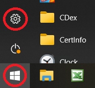 This should bring up the Start Menu. Look for the gear that indicates Settings and click it. | |